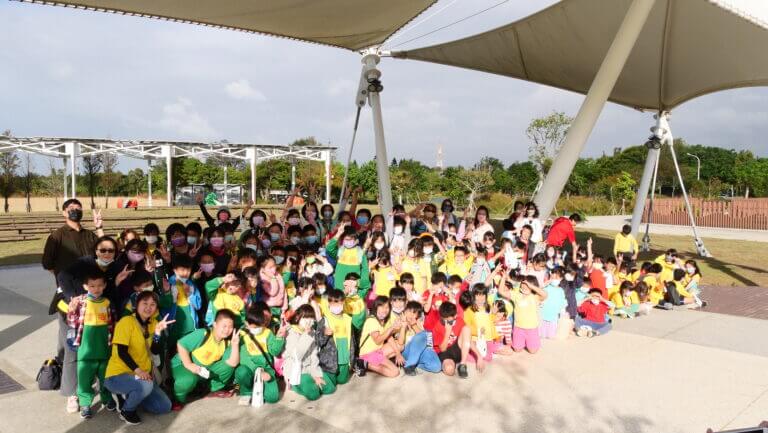 首先登場的是中正、廣興、菓林和大埔四個據點的聯合戶外教學,四輛遊覽車載著8名陪伴老師、超過150名的孩子,浩浩蕩蕩來到「新屋環境教育園區」,在導覽人員的帶領下參觀「碳」索生活館,理解碳污染的嚴重結果、學習從行動中減少一次性產品的使用;最後再來個大會師,進行環保小知識的有獎徵答比賽。