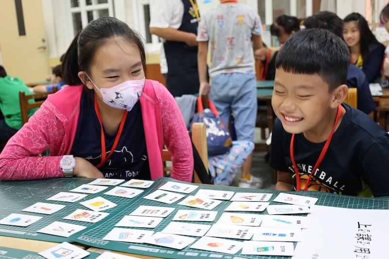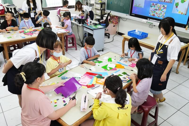 「分類高手」則利用圖卡引導孩子思考如何將物品做有效的區分,並且進行小組競賽以激發孩子的學習欲;還有「書包收納大賽」由各組推派人選上台分享收好的書包、爭取得分;「彩繪資料夾」則可以看出每個孩子的創作風格,利用簽字筆與卡點西德在透明的資料夾上作畫,有人畫了椰子樹、有的是大鯨魚……。