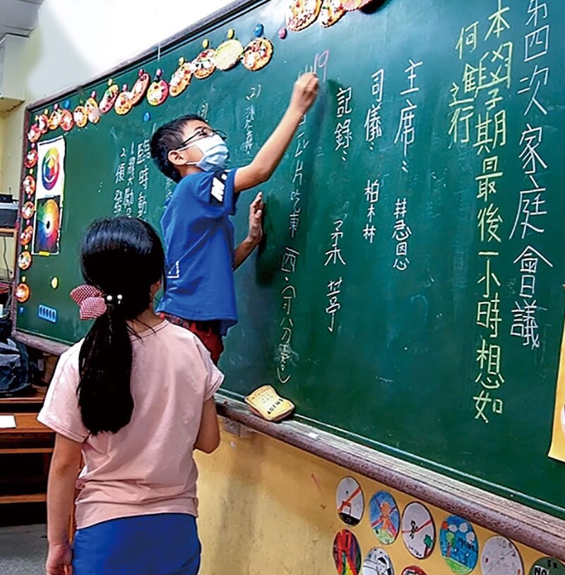統整這些意見,主席已經有一些經驗,只見主席盡責地將大家的意見重複朗誦,怕在場其他孩子未聽見。紀錄則把大家的提議都寫在黑板上,讓每個意見都不被遺漏,每個提議都被尊重,這一刻,沒有任何人是局外人。